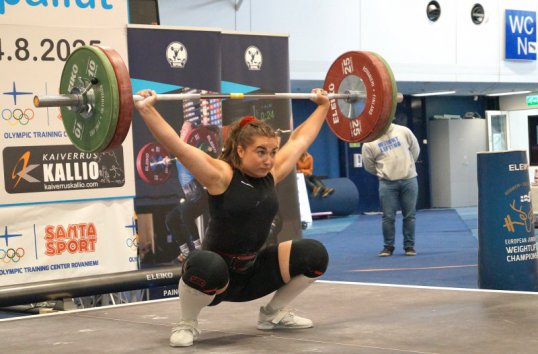 Ensikertalainen Ria Suutari oli 20-vuotiaissa neljäs ja 23-vuotiaissa kuudes ennätyksellään 158 kiloa (70+88). Työnnössä ja yhteistuloksella ennätykseen tuli peräti 6 lisäkiloa.