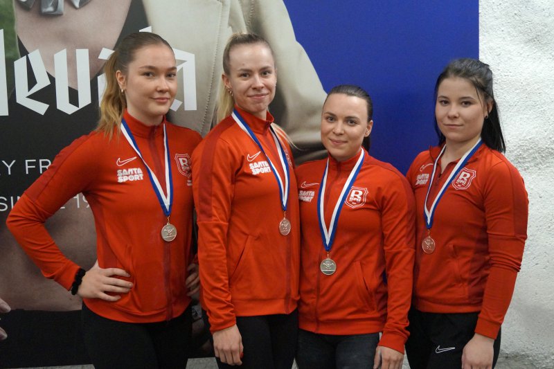 Kuvateksti: Sanni Takkunen, Venla Silvennoinen, Anette Kirkanen ja Ronja Leppiaho nostivat SM-hopeaa.